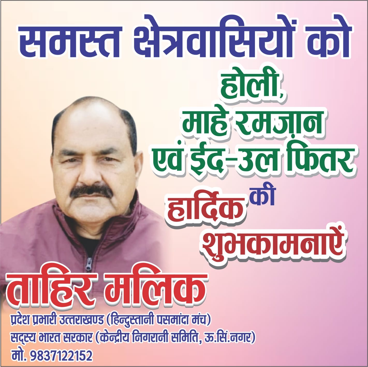 सितारगंज:—होली पर सौहार्द व भाईचारा बनाये रखने की अपील